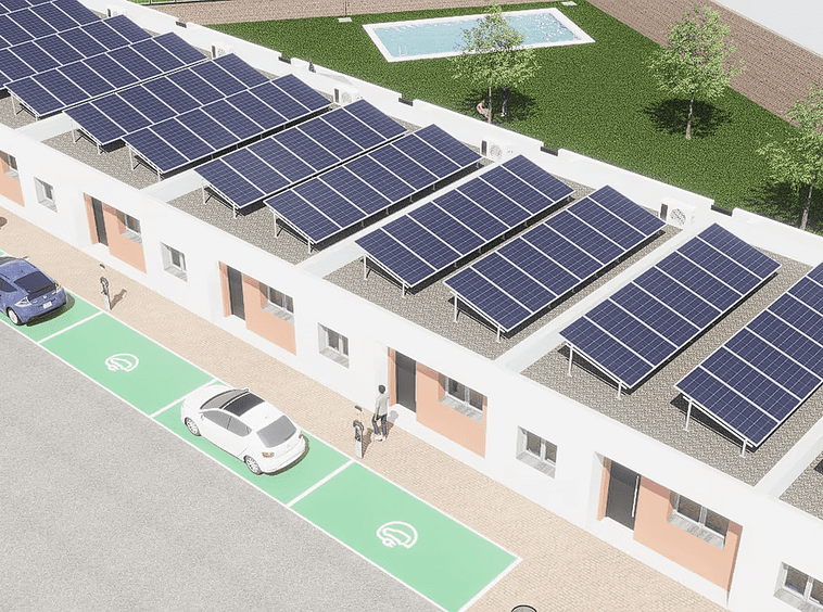 Energía eficiente: instalación fotovoltaica propia y aerotermia para climatización y ACS, reduciendo la factura eléctrica hasta un 95 %.